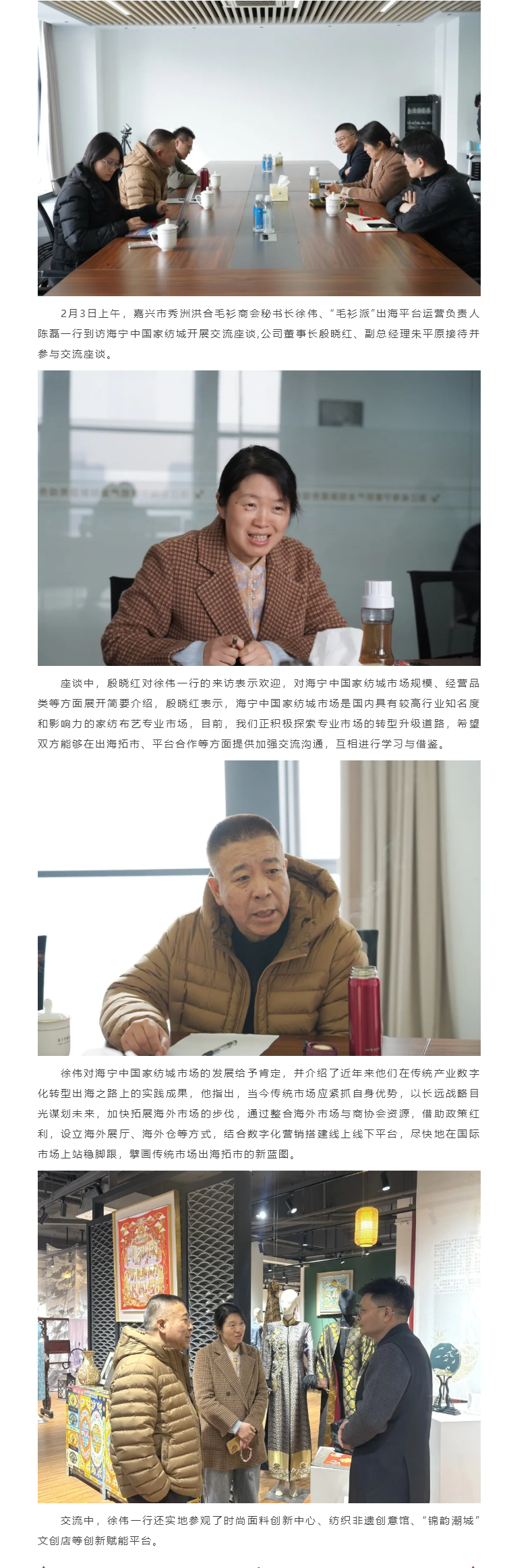 嘉兴市秀洲洪合毛衫商会秘书长徐伟一行到访家纺城开展交流座谈
